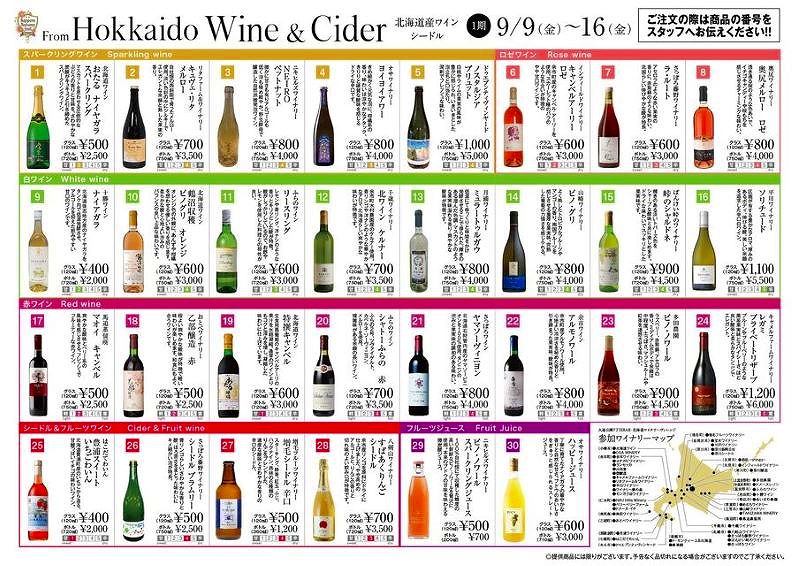 東西に2カ所ある「7丁目BAR」では開催期間を3期に分け、道産ワインを提供します。シードルも合わせると各期30種類、計90種類が登場するそうです。他にも清酒、焼酎、クラフトビール、ウイスキー、ブランデー、クラフトジンが味わえ、お得な飲み比べセットなども用意されています。
