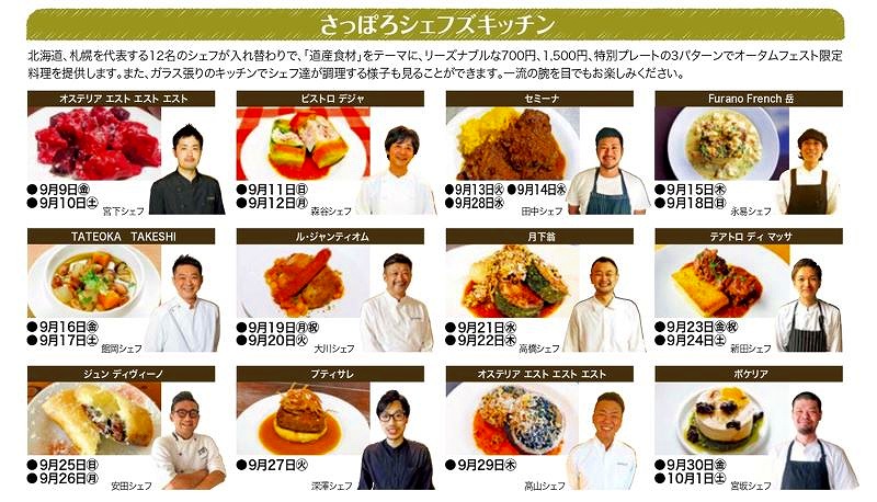 ここは、札幌市内外の人気店のシェフ12人が入れ替わりながら道産食材を使った特別メニューをリーズナブルな値段で提供するオータムフェストの人気企画「さっぽろシェフズキッチン」がある会場です。