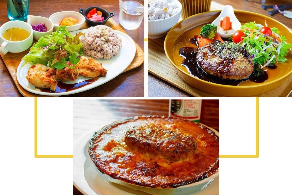 このほか、「アボカドとモッツァレラチーズのハンバーグ」(サラダ、ご飯付 1,300円)や、「野菜たっぷりカレー」(1,200円)も人気です。スイーツもおすすめで、「ピスタチオパンケーキ」(1,350円)はお店の一押しです。