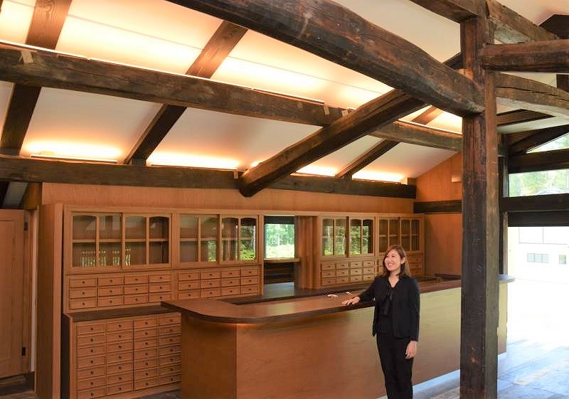 1890年代に同市内に建てられた木造2階建て延べ460平方メートルの古民家を現地で解体、40トンの木材を輸送。同市の宮大工がくぎを使わずはりや柱を組み直した。当時の構造を生かしつつ内部のレイアウトを変え、外観は窓を増やすなどモダンな印象にした。