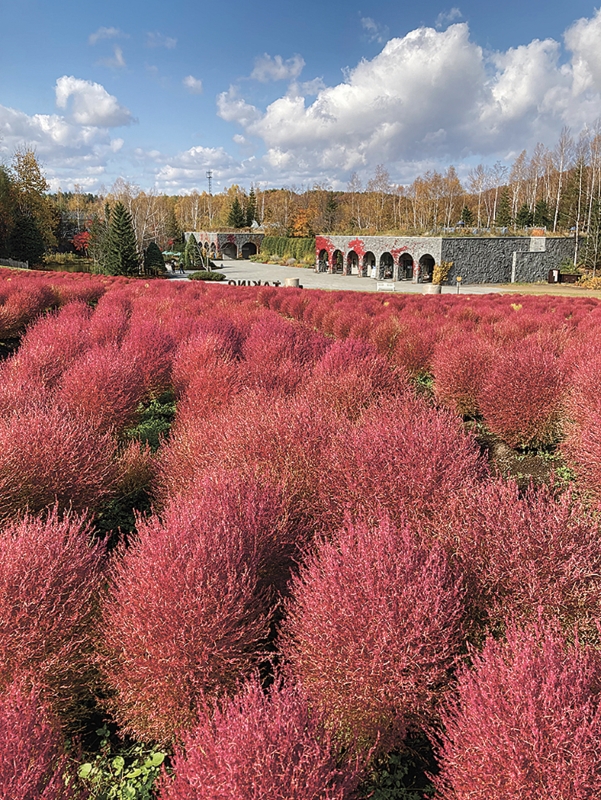 約400万平方メートルの敷地は四つのエリアに分かれる。見どころはカントリーガーデンに植えられた約6千株のコキア。こんもり丸い形が赤く染まる姿が愛らしい一年草で、樹木とは違った魅力がある。22、23日は園内の紅葉スポットを巡る無料のシャトルバスを運行。