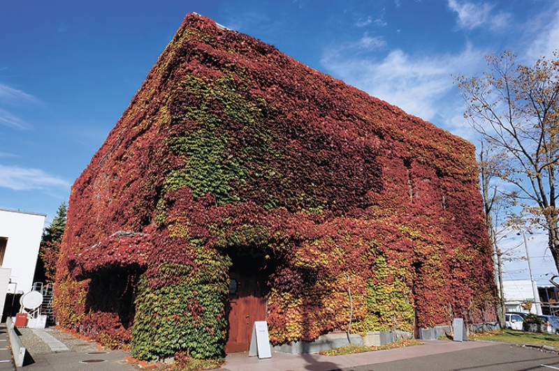 羊ケ丘通沿い。建物全体を覆うツタが見事な、知る人ぞ知る人気の紅葉スポット。時間がたつほど、環境と調和するようにと1993年のオープン時からはわせているそう。「ピークには真っ赤になりますが、緑から徐々に赤に染まるグラデーションも見応えがありますよ」(リポーター・川口正志)